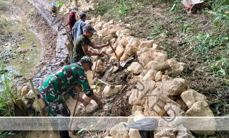 Aktif Babinsa Tambelangan Bantu Warga Samaran Bangun Saluran Irigasi Air