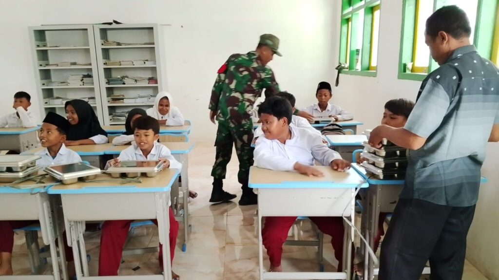 Sampang – Wujud kepedulian terhadap kesehatan dan tumbuh kembang generasi muda terus ditunjukkan oleh aparat kewilayahan. Babinsa Koramil 0828/02 Camplong, Kopda Hendrid, melaksanakan kegiatan pendampingan program Makan Bergizi Gratis (MBG) di SDN Madupat, Kecamatan Camplong, Kabupaten Sampang. Kegiatan ini merupakan bagian dari upaya mendukung pemenuhan gizi anak usia sekolah agar tumbuh sehat, kuat, dan cerdas. Kehadiran Babinsa dalam kegiatan tersebut tidak hanya sebagai pendamping, tetapi juga memberikan motivasi kepada para siswa untuk selalu menjaga pola makan sehat dan semangat dalam belajar.
