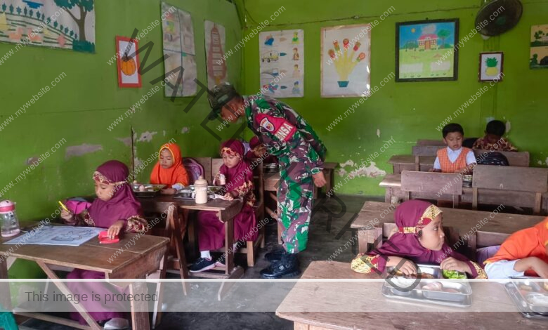 Babinsa Hadir Membawa Ceria: Kopda Hendrid Dampingi Distribusi MBG di Sekolah Desa Tamban