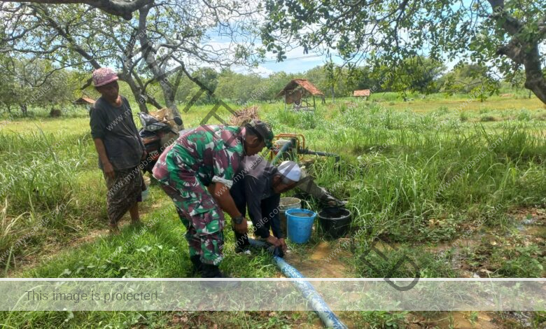 Babinsa Ketapang, Peltu Jasuli Bantu Petani Atasi Kekeringan dengan Pompanisasi Pengairan Ke Sawah