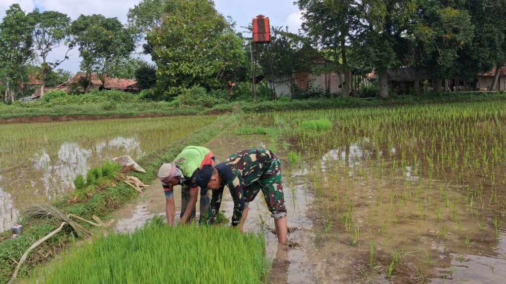 Sampang – Wujud nyata kepedulian terhadap ketahanan pangan terus ditunjukkan oleh aparat kewilayahan. Babinsa Koramil 0828/10 Kedungdung, Sertu Gunarso, terjun langsung membantu para petani dalam kegiatan penanaman padi Musim Tanam (MT) ke-2 di Desa Rohayu, Kecamatan Kedungdung, Kabupaten Sampang. Kegiatan ini dilakukan sebagai bentuk pendampingan kepada petani sekaligus upaya mendukung program swasembada pangan nasional. Sertu Gunarso tampak berbaur bersama warga, ikut menanam padi di lahan persawahan milik masyarakat setempat.