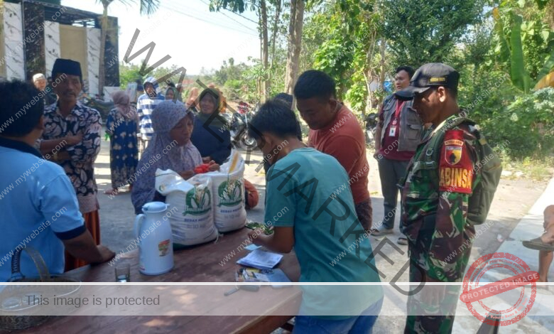 Babinsa Koramil Robatal Kawal Penyaluran Bantuan Beras Bulog di Desa Tragih