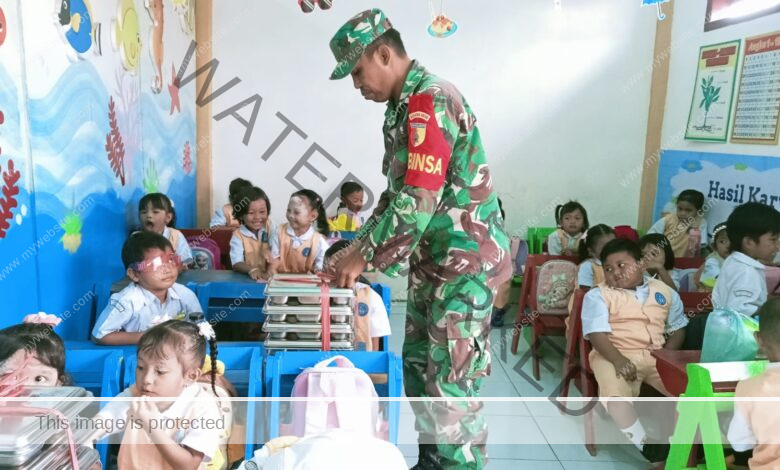 Babinsa Omben Dampingi Pendistribusian Makan Bergizi Gratis untuk Pelajar di Karang Gayam