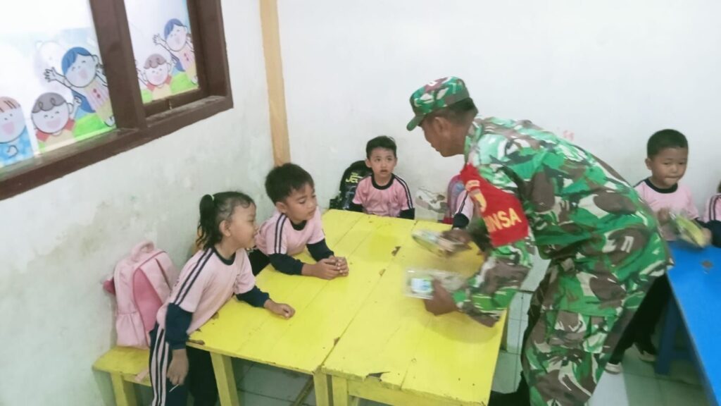 Sampang – Babinsa Koramil 0828-03/Omben, Sertu Nurdiansyah bersama Koptu Kusmolyadi, melaksanakan pendampingan kegiatan penyaluran Makan Bergizi Gratis (MBG) ke sejumlah sekolah di wilayah Kecamatan Omben, Kabupaten Sampang. Pendampingan ini bertujuan untuk memastikan proses penyaluran MBG berjalan dengan lancar, tertib, dan aman, serta tepat sasaran kepada para siswa penerima manfaat. Kehadiran Babinsa di lapangan juga sebagai bentuk dukungan TNI terhadap program pemerintah dalam meningkatkan gizi dan kesehatan anak usia sekolah.