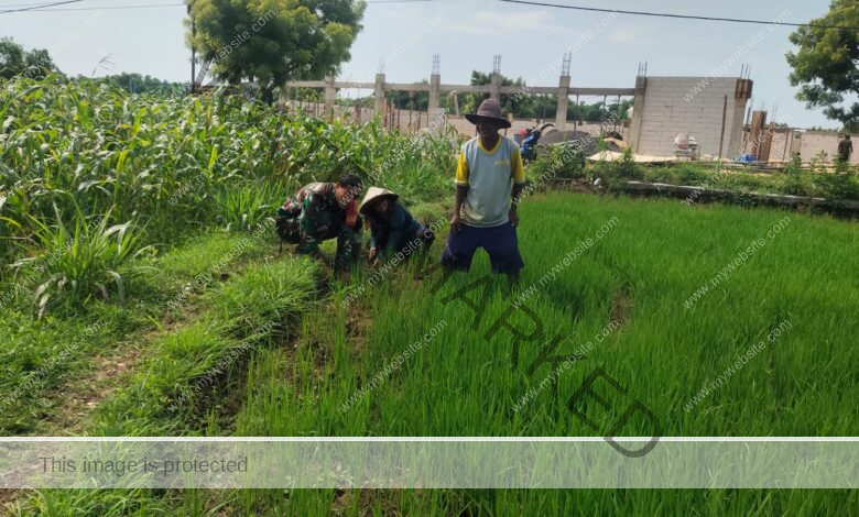 Sampang – Babinsa Pos Ramil 0828/13 Pangarengan, Serka Lery Ismanto, melaksanakan kegiatan pendampingan kepada para petani dengan membantu membersihkan gulma atau tumbuhan liar yang berpotensi menurunkan kualitas tanaman padi, bertempat di Dusun Pranggesan, Desa Panyirangan, Kecamatan Pangarengan, Kabupaten Sampang.(3/1/26) Kegiatan ini merupakan bagian dari upaya Babinsa dalam mendukung ketahanan pangan wilayah serta mempererat kemanunggalan TNI dengan rakyat. Gulma yang tumbuh di area persawahan dapat menghambat pertumbuhan padi karena menyerap unsur hara dan air yang seharusnya digunakan oleh tanaman utama.