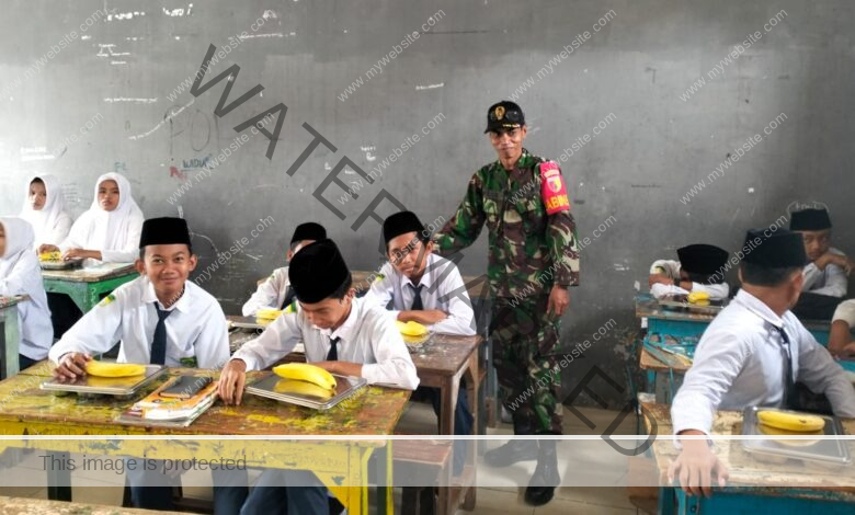 Banyuates— Babinsa Desa Kembang Jeruk, Serka Eli, kembali menunjukkan komitmennya dalam mendukung program pemerintah melalui pendampingan kegiatan Makan Bergizi Gratis (MBG) yang dilaksanakan di MTs Al-Muntahi, Desa Kembang Jeruk, Kecamatan Banyuates, Kab. Sampang. Kegiatan MBG yang berlangsung pada hari ini diikuti dengan penuh antusias oleh para siswa. Serka Eli turun langsung memastikan jalannya kegiatan berjalan tertib, aman, dan tepat sasaran. Ia juga memberikan motivasi kepada para siswa tentang pentingnya menjaga kesehatan serta memanfaatkan program MBG untuk mendukung proses belajar.