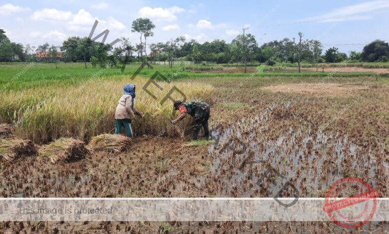 Pangarengan, Sampang – Serka Halik, Babinsa dari Posramil 0828/13 Pangarengan, memberikan dukungan langsung kepada petani di wilayah binaannya dengan terlibat aktif dalam kegiatan panen padi di Desa Pangarengan, Kecamatan Pangarengan, Sampang. Sebagai bagian dari program ketahanan pangan, kehadiran Babinsa dalam kegiatan panen padi ini bertujuan untuk memberikan semangat kepada petani serta memastikan ketahanan pangan di wilayah tersebut tetap terjaga. Serka Halik turut serta membantu para petani dalam memanen hasil pertanian mereka, yang kali ini diikuti oleh sejumlah anggota kelompok tani setempat.