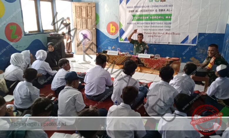 Sokobanah, 16 Juli 2025 – Dalam rangka Masa Pengenalan Lingkungan Sekolah (MPLS), Babinsa Koramil 0828/08 Sokobanah, Serma Kholidin, memberikan pembekalan wawasan kebangsaan dan bela negara kepada para siswa baru di SMP Al-Hidayah dan SMA Al-Mubarok, yang berlokasi di Desa Bira Timur, Kecamatan Sokobanah, Kabupaten Sampang, Madura. Kegiatan yang berlangsung sejak pagi ini diikuti dengan antusias oleh ratusan siswa baru dari kedua sekolah. Dalam penyampaiannya, Serma Kholidin menekankan pentingnya menanamkan nilai-nilai kedisiplinan, cinta tanah air, dan semangat bela negara sejak dini.
