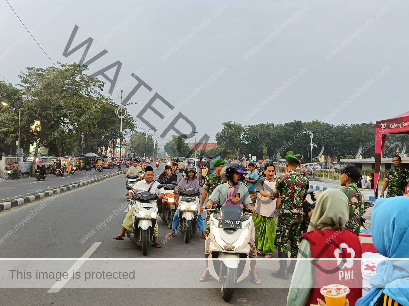 Relawan PMI bersama anggota TNI dan Polri tampak antusias membagikan paket takjil kepada pengendara dan pejalan kaki yang melintas. Aksi ini bertujuan untuk membantu masyarakat yang belum sempat mendapatkan makanan berbuka puasa, terutama bagi mereka yang masih dalam perjalanan.