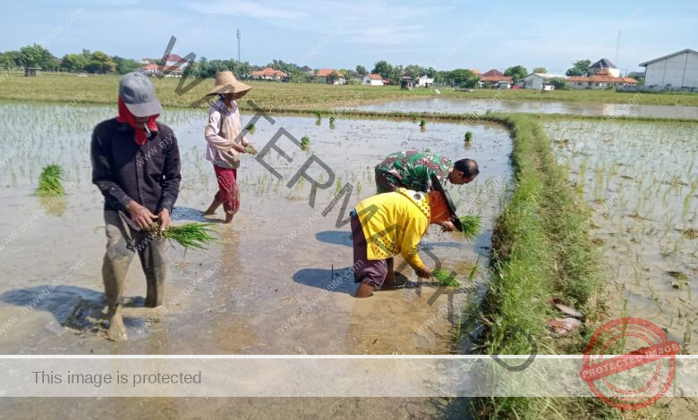 Sampang – Dalam rangka mendukung program ketahanan pangan serta mempererat hubungan antara TNI dan masyarakat, Babinsa Koramil 0828/08 Sokobanah, Koptu Basuki Rachmat, turut berpartisipasi langsung dalam kegiatan pertanian di Desa Bire Timur, Kecamatan Sokobanah, Kabupaten Sampang. Pada kesempatan tersebut, Koptu Basuki Rachmat memberikan bantuan kepada petani setempat dalam proses penanaman padi. Dengan semangat gotong royong, Babinsa bersama warga setempat secara bergotong royong menanam padi di lahan persawahan yang dikelola oleh masyarakat.