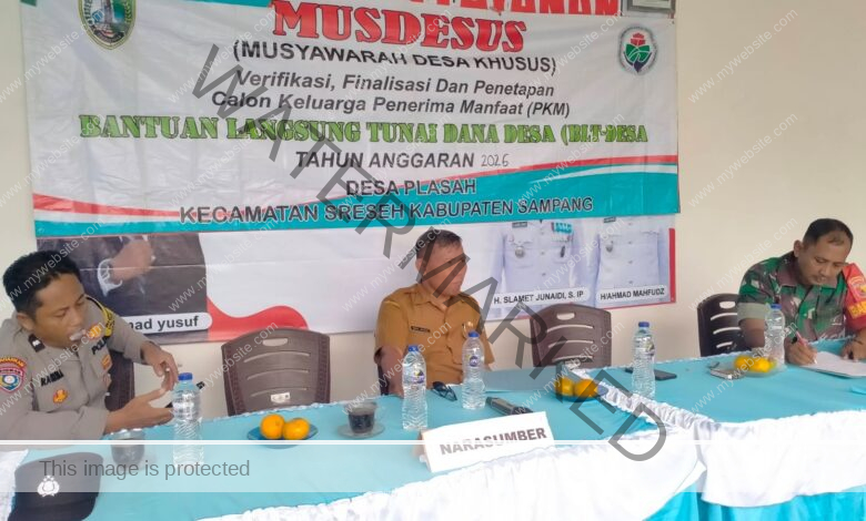 Sampang – Babinsa Koramil 0828/05 Sreseh, Serda Ach. Nadhim, melaksanakan kegiatan Musyawarah Desa Khusus (Musdessus) dalam rangka verifikasi, finalisasi, dan penetapan Calon Keluarga Penerima Manfaat (KPM) Bantuan Langsung Tunai (BLT) Desa Tahun Anggaran 2026. Kegiatan tersebut berlangsung di Desa Plasah, Kecamatan Sreseh, Kabupaten Sampang. Musdessus ini dilaksanakan sebagai bentuk transparansi dan akuntabilitas pemerintah desa dalam menentukan calon penerima BLT Desa agar tepat sasaran serta sesuai dengan ketentuan yang berlaku. Kegiatan tersebut dihadiri oleh Kepala Desa Plasah beserta perangkat desa, BPD, pendamping desa, tokoh masyarakat, serta unsur terkait lainnya.