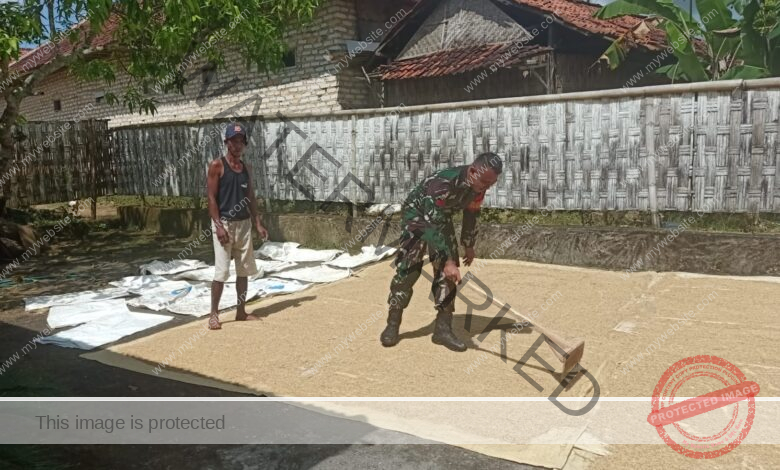 Babinsa Tambelangan Bantu Jemur Padi, Wujud Kepedulian TNI Terhadap Petani