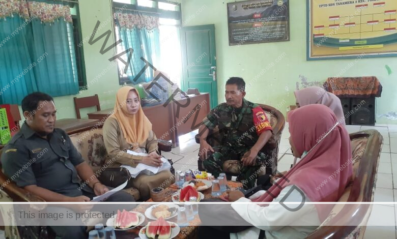 Torjun — Babinsa Koramil 0828/04 Torjun, Sertu Agus Dwi, bersama Bidan Desa Tanah Merah melaksanakan penyuluhan Budaya Hidup Sehat dan Bersih kepada Kepala Sekolah dan para guru pembimbing SDN 3 Tanah Merah, Kecamatan Torjun, Kabupaten Sampang. Kegiatan penyuluhan yang digelar di lingkungan sekolah tersebut bertujuan meningkatkan pemahaman tenaga pendidik tentang pentingnya penerapan pola hidup bersih bagi siswa sejak dini. Materi yang disampaikan meliputi cara menjaga kebersihan diri, pentingnya cuci tangan pakai sabun, pola makan sehat, serta menjaga kebersihan lingkungan sekolah.