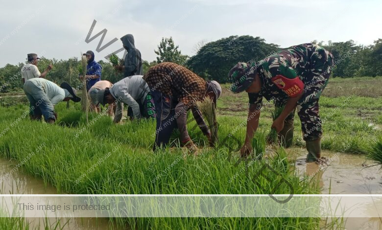 Babinsa Torjun Menyatu dengan Sawah: Serka Triman Bantu Petani Siapkan Bibit Padi