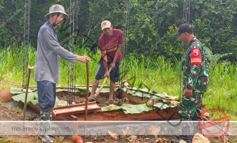 Sampang— Dalam semangat gotong royong dan pengabdian kepada masyarakat, Babinsa Koramil 0828/09 Banyuates, Sertu Wagiman, turut serta dalam kegiatan pengecoran pembangunan rumah pompa bersama Kelompok Tani (Poktan) Garuda di Desa Montor, Kecamatan Banyuates, Kabupaten Sampang. Kegiatan ini merupakan bentuk nyata sinergi antara TNI dan masyarakat dalam mendukung program ketahanan pangan serta peningkatan infrastruktur pertanian di wilayah pedesaan.