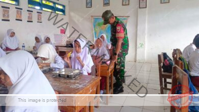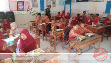Serda Khamid Dampingi Pendistribusian MBG di SDN 1 Moktesareh, Wujud Kepedulian TNI pada Generasi Muda