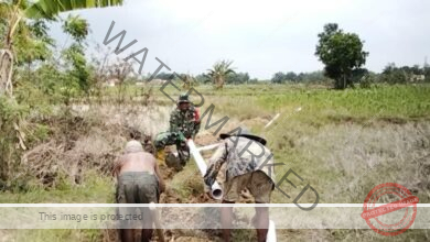 Babinsa Camplong dan Poktan “Nyana Indah” Gotong Royong Salurkan Pipa Air ke Sawah Desa Tambaan