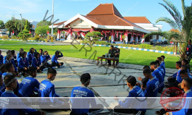SAMPANG – Komandan Kodim (Dandim) 0828/Sampang, Letkol Czi. Dika Catur Yanuar Anwar S.T, memberikan suntikan semangat dan motivasi membara kepada para anggota Pasukan Pengibar Bendera Pusaka (Paskibraka) Kabupaten Sampang, Rabu (06/08), di Lapangan Pendopo Trunojoyo Sampang. Kunjungan ini menjadi momen berharga bagi para calon pengibar bendera yang tengah menjalani latihan intensif jelang peringatan HUT ke-80 Kemerdekaan Republik Indonesia. Dalam sambutannya, Dandim menekankan pentingnya disiplin, tanggung jawab, dan rasa cinta tanah air.