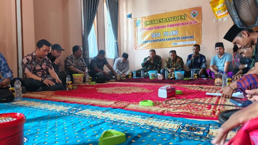 Sampang — Danramil 0828/09 Banyuates, Kapten Caj Joko, menghadiri kegiatan Musyawarah Rencana Pembangunan Desa (Musrenbangdes) di Desa Tolang, Kecamatan Banyuates, Kabupaten Sampang. Kehadiran Danramil pada kegiatan tersebut merupakan bentuk dukungan TNI terhadap proses perencanaan pembangunan di tingkat desa. Musrenbangdes yang diikuti oleh perangkat desa, tokoh masyarakat, BPD, serta perwakilan kelembagaan desa itu membahas prioritas pembangunan pada tahun anggaran mendatang. Agenda mencakup sektor infrastruktur, pemberdayaan masyarakat, peningkatan layanan sosial, serta penguatan ekonomi desa.
