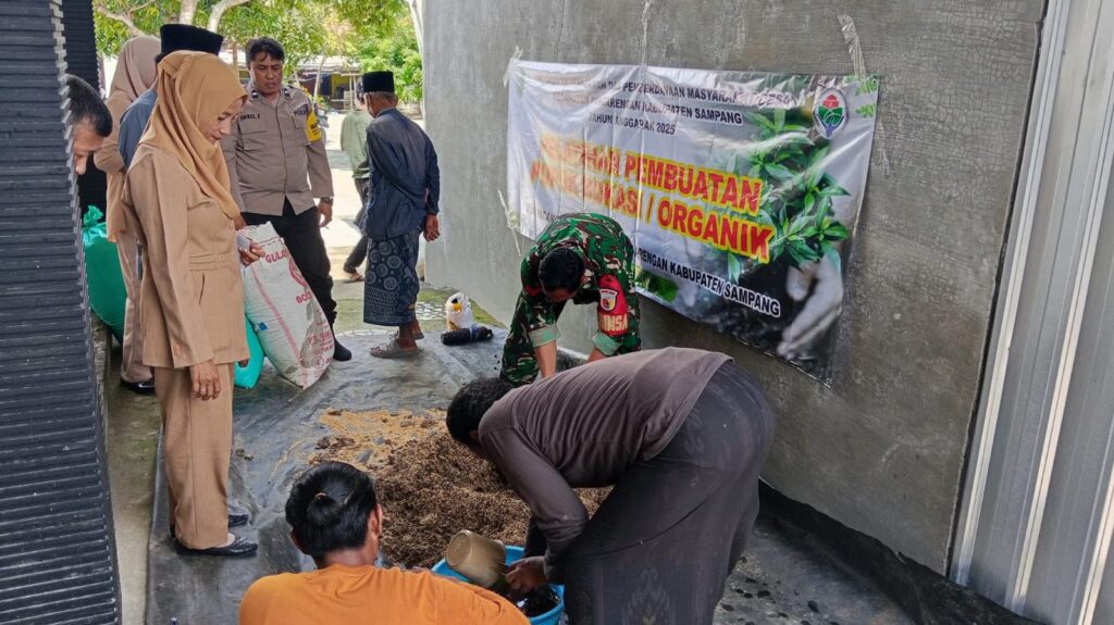 Sampang – Babinsa Posramil 0828/13 Pangarengan, Koptu Darwis Amirudin, melaksanakan kegiatan pendampingan pelatihan pembuatan pupuk organik bersama warga dan Kelompok Tani (Poktan) Pecanggan. Kegiatan ini berlangsung di Dusun Canggge, Desa Pacangga’an, Kecamatan Pangarengan, Kabupaten Sampang, sebagai bentuk dukungan TNI dalam meningkatkan ketahanan pangan dan kemandirian petani.