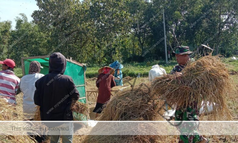 Hangatnya Kebersamaan di Sawah: Babinsa Torjun Dampingi Warga Panen Padi