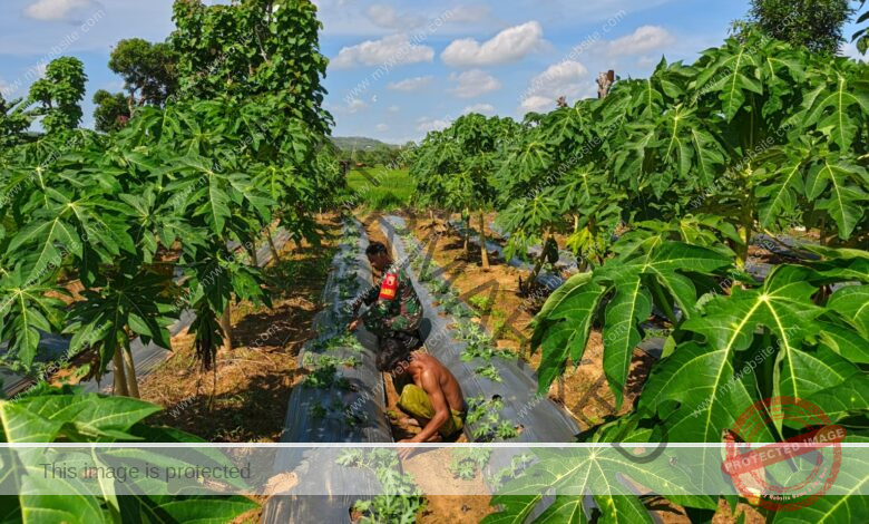 Jatra Timur, Banyuates – Sinergi antara TNI dan masyarakat kembali terwujud dalam kegiatan pertanian yang menyentuh akar kehidupan warga. Babinsa Koramil 0828/09 Banyuates, Serda Wagiman, bersama Kelompok Tani (Poktan) Galis dan warga binaan melaksanakan kegiatan perawatan tanaman semangka di lahan pertanian yang terletak di Dusun Galis, Desa Jatra Timur, Kecamatan Banyuates, Kabupaten Sampang.