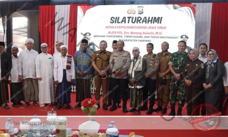 Kapolda Jatim Irjen Pol Drs. Nanang Avianto bersama pejabat utama Polda Jatim melaksanakan kunjungan kerja ke Mapolres Sampang, Selasa (12/08/2025) pagi. Kunjungan kerja Kapolda Jatim ke Mapolres Sampang adalah untuk bersilaturahmi Kamtibmas dengan Forkopimda, Tokoh agama, dan Tokoh masyarakat di Kabupaten Sampang. Setibanya di Mapolres Sampang, Irjen Pol Drs. Nanang Avianto menerima hormat jajar dan disambut jajaran Forkopimda Kabupaten Sampang, PJU Polres Sampang serta Kapolsek jajaran Polres Sampang. Sebelum melaksanakan silaturahmi, Kapolda Jatim didampingi Kapolres Sampang memberikan santunan kepada puluhan anak yatim. Acara silaturahmi Kamtibmas Kapolda Jatim dengan Bupati Sampang H Slamet Junaidi dan Wabup H Ahmad Mahfudz, Dandim 0828/Sampang Letkol Czi Dika Catur Yanuar Anwar S.T, Forkopimda, Tokoh Agama, Tokoh Masyarakat di Kabupaten Sampang berlangsung santai dan penuh keakraban di halaman apel belakang Polres Sampang.