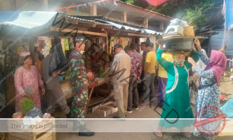 Banyuates– Serma Danang, anggota Koramil 0828/09 Banyuates, melaksanakan pengecekan harga dan ketersediaan bahan pokok menjelang Idul Fitri 2025 di Pasar Banyuates, Kecamatan Banyuates, Kabupaten Sampang. Kegiatan ini dilakukan untuk memastikan stabilitas harga dan pasokan barang di pasar, terutama menjelang Hari Raya Idul Fitri, yang biasa diwarnai dengan lonjakan permintaan terhadap bahan pokok.