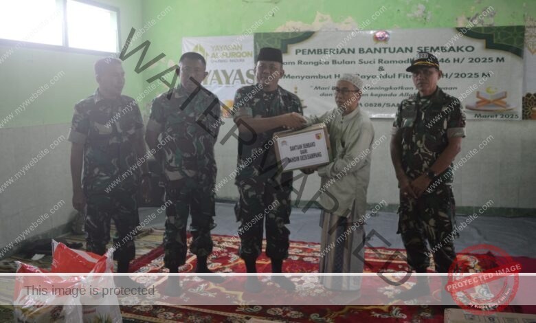 Sampang – Berbagi kebahagiaan bulan suci Ramadhan dan menjelang perayaan Idul Fitri, 2025 M Kodim 0828/Sampang memberikan bantuan sembako kepada Yayasan Yatim Piatu Al Furqon Sampang, Bantuan ini merupakan bagian dari kegiatan sosial yang dilakukan oleh Kodim Sampang untuk meringankan beban saudara-saudara kita yang membutuhkan, khususnya anak-anak yatim piatu yang berada di bawah asuhan yayasan tersebut. Bantuan sembako yang diberikan berupa bahan kebutuhan pokok seperti beras, minyak goreng, gula, tepung, dan makanan lainnya, yang diharapkan dapat membantu meringankan kebutuhan sehari-hari mereka menjelang hari raya Idul Fitri.