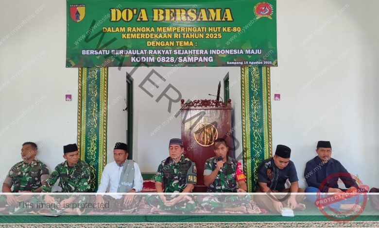 Sampang, 15 Agustus 2025 — Dalam rangka memperingati Hari Ulang Tahun (HUT) Kemerdekaan Republik Indonesia ke-80, Kodim 0828/Sampang menggelar acara doa bersama lintas satuan yang dilangsungkan di Masjid Al-Ikhlas, Makodim Sampang. Kegiatan ini mengusung tema nasional “Bersatu, Berdaulat, Rakyat Sejahtera, Indonesia Maju”, sebagai bentuk refleksi kebangsaan dan rasa syukur atas kemerdekaan yang telah diraih serta harapan untuk kemajuan Indonesia ke depan.