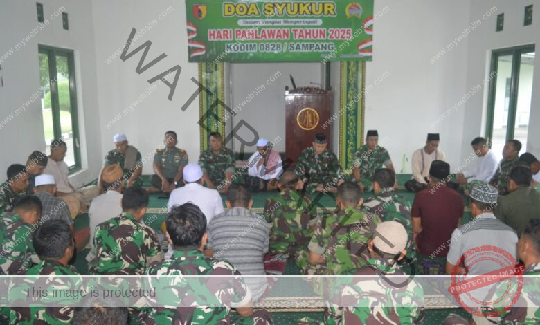 Sampang – Dalam rangka memperingati Hari Pahlawan Tahun 2025, Komando Distrik Militer (Kodim) 0828/Sampang menggelar kegiatan Do’a Syukur Bersama di Masjid Makodim, Jumat (7/11/2025). Kegiatan tersebut diikuti oleh seluruh prajurit dan PNS jajaran Kodim 0828/Sampang. Doa bersama dipimpin oleh ustaz Umar Faruq dan berlangsung dengan khidmat.