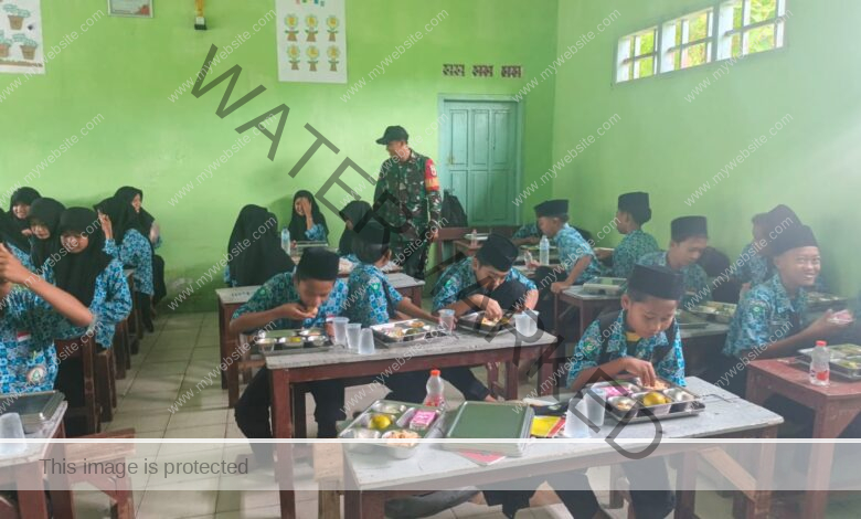Banyuates – Babinsa Koramil 0828/09 Banyuates, Kopda Sutrisno, melaksanakan kegiatan pendampingan pendistribusian Makan Bergizi Gratis (MBG) di Pondok Pesantren Tarbiatul Aulan, Desa Tebanah, Kecamatan Banyuates. Kegiatan ini merupakan wujud kepedulian TNI terhadap kesejahteraan masyarakat, khususnya dalam mendukung program pemerintah untuk peningkatan gizi anak-anak usia dini dan pelajar pesantren. Dalam kegiatan tersebut, Kopda Sutrisno turut membantu proses pembagian paket makanan bergizi, memastikan seluruh santri mendapatkan jatah sesuai data, serta memberikan semangat kepada mereka agar terus menjaga kesehatan dan semangat belajar.