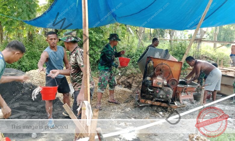 Warga Desa Batu Karang pun menyambut antusias kegiatan ini. Dengan penuh semangat, mereka turut serta dalam proses pengecoran pondasi, bahu-membahu bersama anggota TNI.