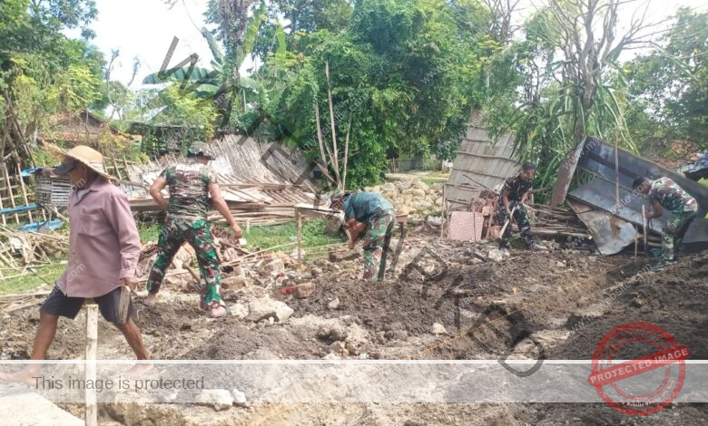 Sampang, 19 April 2025 – Satgas Pra TNI Manunggal Membangun Desa (TMMD) ke-124 Kodim 0828/Sampang mulai melakukan penggalian pondasi Rumah Tidak Layak Huni (Rutilahu) milik Ibu Umrina, warga Dusun Kramat, Desa Batu Karang, Kecamatan Camplong, Kabupaten Sampang. Kegiatan ini menjadi awal dari rangkaian program TMMD yang bertujuan meningkatkan kualitas hidup masyarakat pedesaan melalui pembangunan infrastruktur dan bantuan sosial. Penggalian pondasi dilakukan secara gotong-royong bersama warga setempat, mencerminkan semangat kebersamaan dan kemanunggalan TNI dengan rakyat.