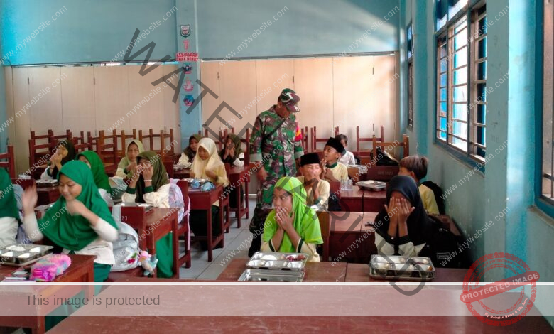 Sokobanah– Babinsa Koramil 0828-08/Sokobanah, Kopda Herul Anam, kembali menunjukkan dedikasinya dalam membina wilayah teritorial melalui kegiatan pendampingan program Makan Bergizi Gratis (MBG) di sejumlah sekolah penerima manfaat di wilayah Kecamatan Sokobanah, Kabupaten Sampang. Kegiatan ini merupakan bagian dari upaya pemerintah untuk meningkatkan gizi anak sekolah sekaligus mendukung tumbuh kembang generasi muda bangsa. Dengan penuh semangat, Kopda Herul Anam mendampingi pelaksanaan distribusi dan konsumsi makanan bergizi di sekolah-sekolah, memastikan program berjalan dengan tertib, lancar, dan tepat sasaran.