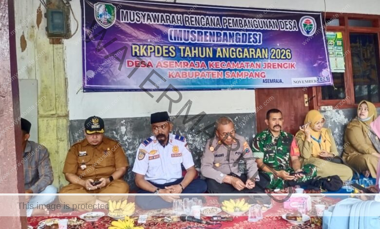 Sampang — Dalam semangat membangun desa yang maju, mandiri, dan berdaya saing, Babinsa Koramil 0828/06 Jrengik bersama unsur Forkopimcam Jrengik turut hadir dan berpartisipasi aktif dalam kegiatan Musyawarah Perencanaan Pembangunan Desa (Musrenbangdes) di Desa Asemrajah, Kecamatan Jrengik, Kabupaten Sampang. Kegiatan yang dihadiri oleh Kepala Desa Asemrajah, perangkat desa, tokoh masyarakat, BPD, serta perwakilan masyarakat ini bertujuan untuk merumuskan arah dan prioritas pembangunan desa tahun mendatang. Dalam forum tersebut, berbagai usulan masyarakat dibahas secara terbuka, mulai dari peningkatan infrastruktur, pemberdayaan ekonomi warga, hingga penguatan ketahanan sosial dan lingkungan.