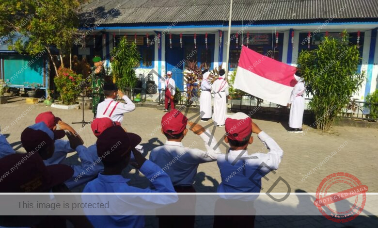 Sampang – Dalam upaya menanamkan semangat nasionalisme dan disiplin sejak usia dini, Babinsa Koramil 0828/04 Torjun, Serka Ahmad Rifa’i, memimpin pelaksanaan upacara bendera di SDN 2 Pangongsean, Desa Pangongsean, Kecamatan Torjun, Kabupaten Sampang, Senin pagi.