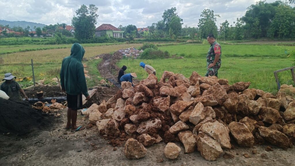 Sampang – Semangat gotong royong kembali terasa hangat di Desa Jungkarang, Kecamatan Jrengik, Kabupaten Sampang. Dalam upaya meningkatkan kesejahteraan petani, Babinsa Koramil 0828/06 Jrengik, Koptu Suhari, turun langsung membantu warga membangun saluran irigasi guna mengalirkan air ke area persawahan. Kegiatan ini menjadi wujud nyata kepedulian TNI terhadap kebutuhan masyarakat, khususnya dalam mendukung sektor pertanian yang menjadi tulang punggung perekonomian desa. Bersama warga, Koptu Suhari bahu-membahu menggali, menyusun, dan memperbaiki jalur irigasi agar distribusi air dapat berjalan lancar dan merata.