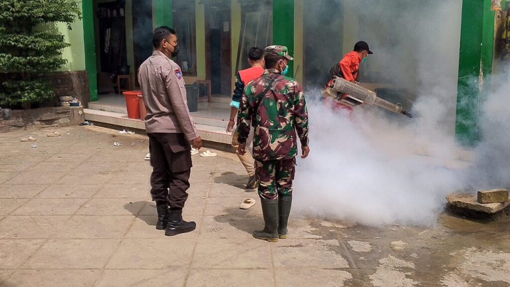 Sokobanah– Babinsa Koramil 0828/08 Sokobanah, Koptu Basuki, bersama Bhabinkamtibmas melaksanakan kegiatan pendampingan fogging di Pondok Pesantren Langgar Anyar, wilayah kerja PKM Batu Lenger, Dusun Lang Sleber, Desa Bira Tengah, Kecamatan Sokobanah, Kabupaten Sampang, pada [Selasa/3/2/26]. Kegiatan fogging ini dilakukan sebagai upaya pencegahan penyebaran penyakit Demam Berdarah Dengue (DBD), khususnya di lingkungan pondok pesantren yang memiliki aktivitas dan mobilitas tinggi. Kehadiran Babinsa dan Bhabinkamtibmas bertujuan untuk memberikan pendampingan, pengamanan, serta memastikan kegiatan berjalan dengan tertib dan lancar.