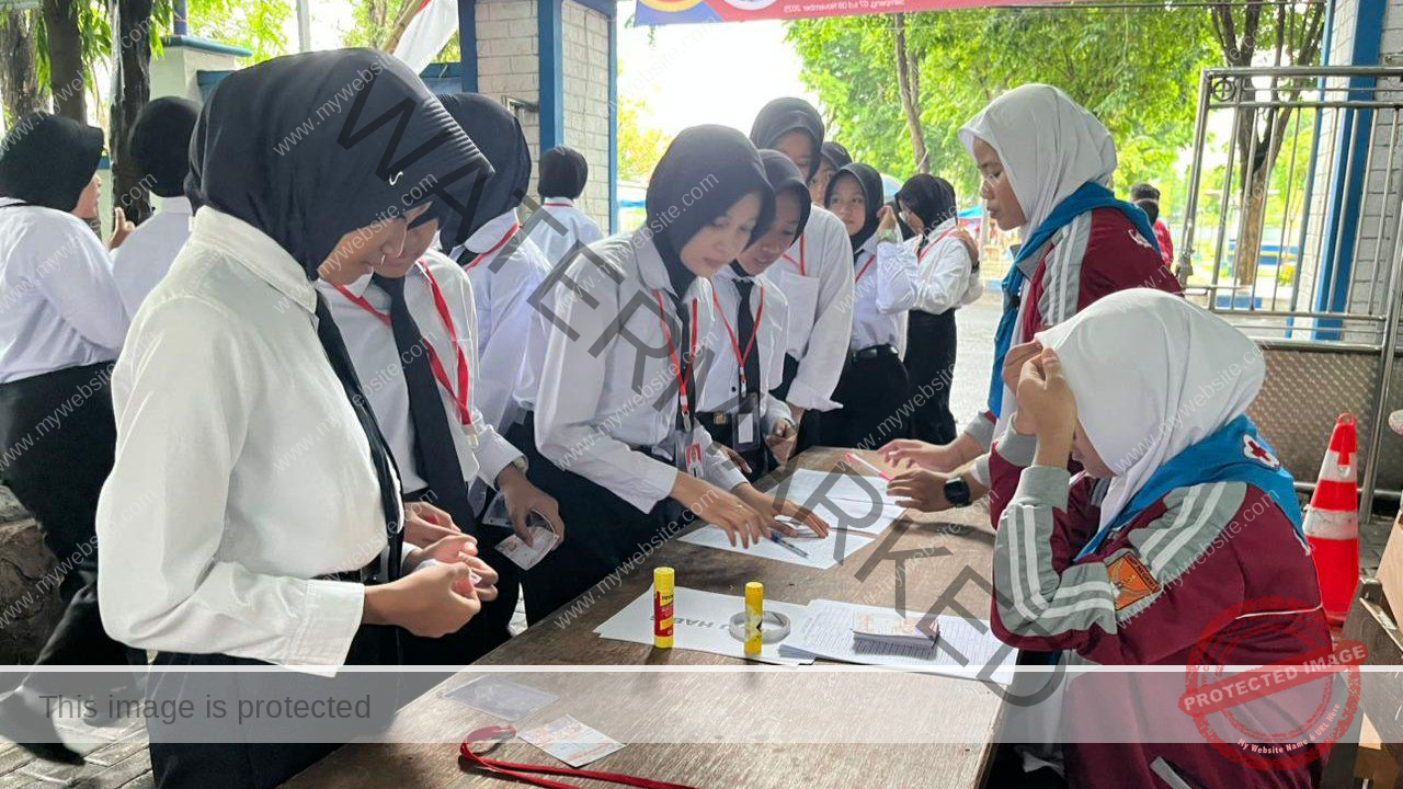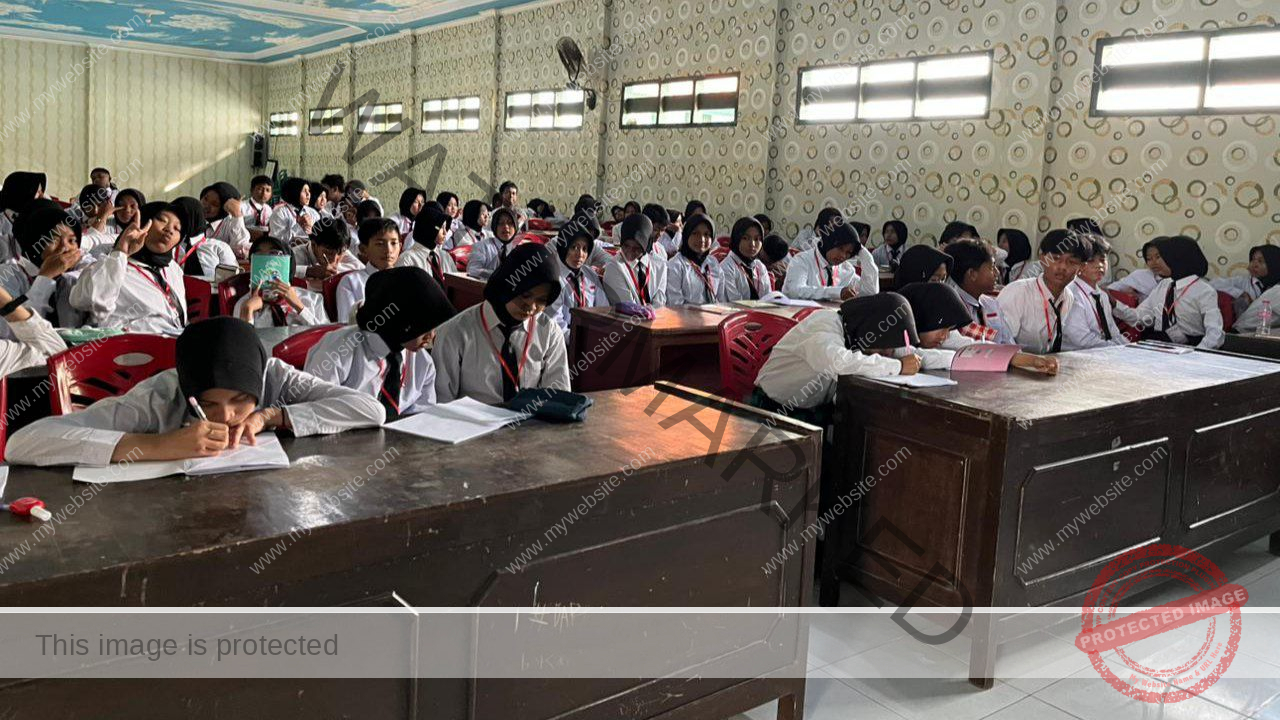 Suasana kegiatan tampak hidup dan penuh semangat. Peserta yang mengenakan seragam putih hitam dengan dasi hitam terlihat serius mengikuti setiap sesi pembelajaran. Meskipun berlangsung di dalam ruangan, antusiasme mereka tidak surut sedikit pun.