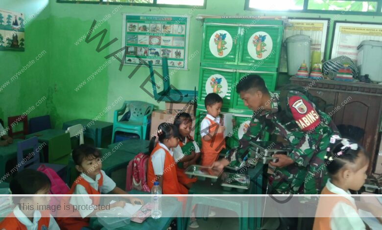 Jrengik – Babinsa Koramil 0828/06 Jrengik, Kopda Rory, melaksanakan kegiatan pendampingan pendistribusian Makan Bergizi Gratis (MBG) di TK Desa Kotah, Kecamatan Jrengik, Kabupaten Sampang. Kegiatan ini merupakan bentuk kepedulian TNI AD melalui peran Babinsa dalam mendukung program peningkatan gizi anak sejak usia dini. Pendistribusian MBG di lingkungan sekolah bertujuan untuk membantu pemenuhan kebutuhan gizi anak-anak agar dapat tumbuh sehat, cerdas, dan aktif dalam kegiatan belajar.