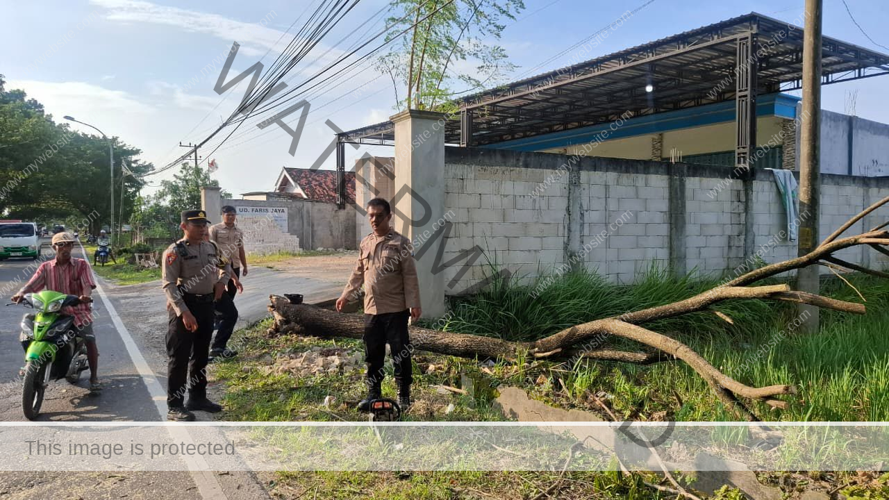 Kapolres Sampang AKBP Hartono, S.Pd., MM., melalui Pamapta Polres Sampang Ipda Nasrun Wijaya Santoso, menghimbau kepada seluruh pengguna jalan dan masyarakat untuk selalu waspada saat berkendara, terutama saat terjadi cuaca ekstrem atau angin kencang yang rawan menyebabkan pohon tumbang.