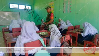 Babinsa Serda Abdul Wahab Dampingi Pendistribusian Makanan Bergizi di Sekolah Wilayah Robatal