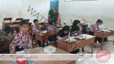 Babinsa Ketapang Dampingi Distribusi Makanan Gizi Gratis di SDN 2 Ketapang Timur