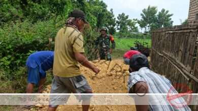 Babinsa Serda Wagiman dan Warga Desa Jatra Timur Gotong Royong Perbaiki Akses Jalan Pertanian