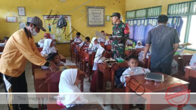 Torjun – Dalam wujud nyata kepedulian terhadap generasi penerus bangsa, Babinsa Koramil 0828/04 Torjun, Sertu Samsul bersama Kopda Ari W,…