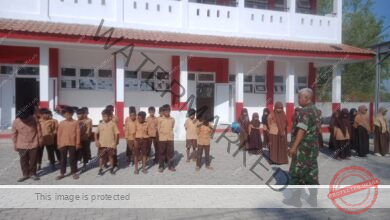 Tumbuhkan Disiplin Sejak Dini, Babinsa Omben Latih PBB di SDN Pandan 2
