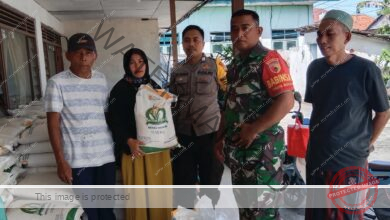 Danposramil Karang Penang Tinjau Langsung Penyaluran Bantuan Beras di Desa Talambah