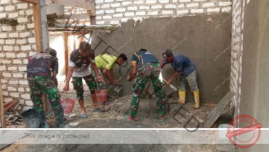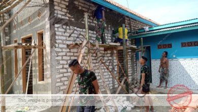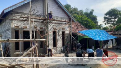 Semangat Membara Satgas TMMD ke-124 Kodim Sampang dan Warga Bangun Rumah Ibu Harifah