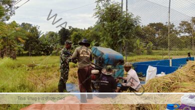 Babinsa Koramil Serka Dwi SP Bersama ke Sawah, Bantu Warga Desa Junok Panen Padi